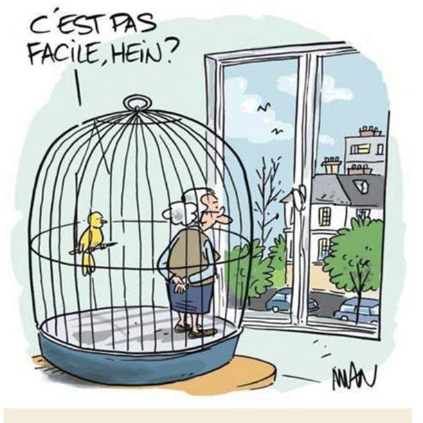 Je ne peux résister à publier un joli dessin humoristique transmis par une amie confinée à Paris.