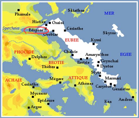Nous prenons l'autoroute en direction de Thessalonique, et bifurquons à l'est assez rapidement vers Eubée. Eubée est cette île très longue, 150 km, et étroite qui longe de près les côtes des régions Attique et Béotie. Selon qu'on vise le nord ou le sud de l'île, on peut passer par le pont suspendu de Chalkida ou par un bac. Notre objectif est d'aller à Loutra-Epsidou au nord de l'île (cf. Epsidos sur la carte, soulignée en rouge, Louta-Epsidou signifiant les thermes d'Epsidos) mais nous restons un moment à Chalkida pour visiter l'ancien château vénitien (puis Ottoman), une des rares choses intéressantes ici, selon le guide du routard. Non seulement c'est intéressant, mais superbe. L'endroit est en haut de la partie continentale de la vieille ville qui est à cheval sur l'île et le continent. Les deux parties de Chalkida sont reliées par le vieux pont, qui a cette particularité d'être coulissant pour laisser passer les bateaux à certaines heures.