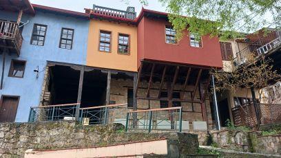Après Epsidos, nous sommes partis vers la presqu'ile du Pélion, dont nous avons exploré quelques villages particulièrement intéressants. Toute la presqu'ile a profité du commerce des tissus au XIX° et début du XX°, ce qui explique de beaux villages assez riches aux maisons de pierre et aux toits de Lauze, notamment Makrinitsa, au nord-est de la ville principale, Volos, grande ville qui a peu d'intérêt sinon d'être en bord de mer. Makrinitsa est à flanc de montagne à 600 mètre d'altitude et les maisons semblent accrochées comme si elles étaient taillées dans la roche. Nous avons vu d'autres villages du même style mais qui n'ont pas conservé l'harmonie de Makrinitsa, beaucoup de maisons récentes se mêlant aux anciennes, ce qui rompt le charme. Contrepartie de la beauté de Makrinitsa, ce village est extrêmement touristique et les hôtels chers.