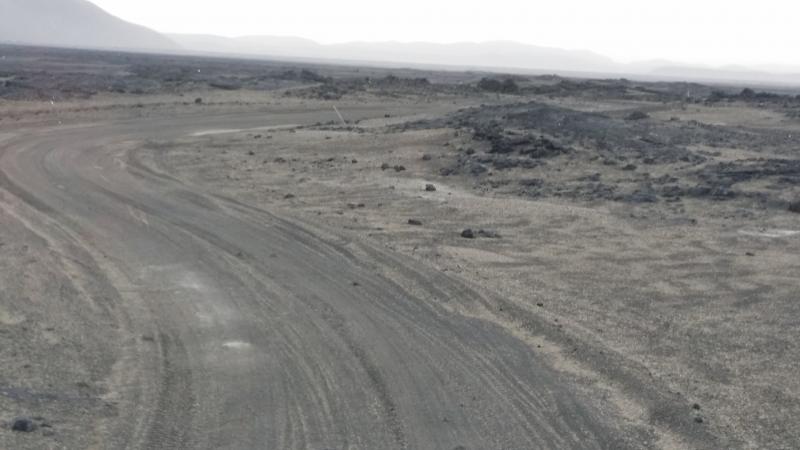 Après Mytvan, environ 80 km de route à travers une plaine volcanique assez aride et toujours bordée de montagnes volcaniques vers Egilsstadir (à 150 km du lac Myvatn), après lesquelles les reliefs s'adouciront et la végétation reprendra sa place (cf article suivant).