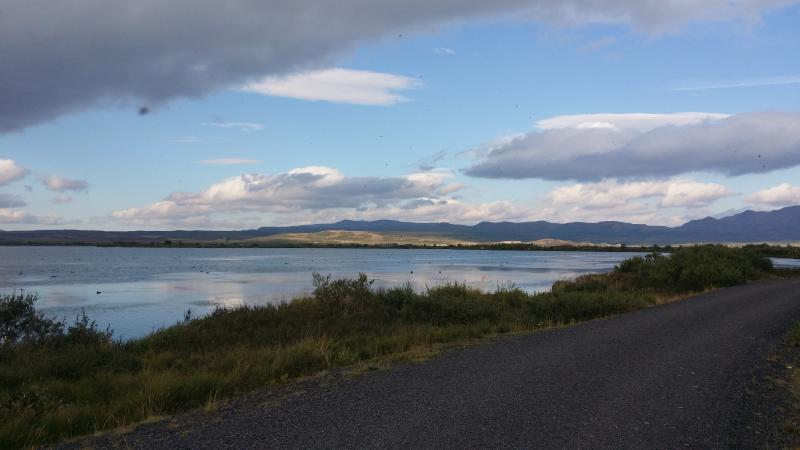 Ce lac très connu, au nord de l'Islande est magnifique. C'est un lieu magique, d'une beauté rare, malgré des moucherons omniprésents et harcelants. My signifie mouche en islandais et vatn, lac ; c'est là que j'ai porté le masque en pleine nature... Il est entouré de volcans et c'est une réserve naturelle européenne de canards. Il y a un petit musée ornithologique très intéressant même si les nombreux oiseaux empaillés me mettent un peu mal à l'aise. De multiples espèces s'y retrouvent parmi lesquelles l'emblématique Eider dont on utilise le duvet des nids après la couvaison pour faire des doudounes, oreillers, édredons, etc.