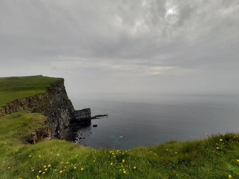 Sinon nous avons fait de très belles randonnées de qq heures sans personne, tout aussi surprenante. Terrain volcanique noir, gris, plage de sable noir, rochers, par endroit on a l'impression de voir la pierre qui un jour a été en ébullition et s'est figée ainsi, en bouillon, comme chiffonnee. À certains endroits les pierres sont recouvertes de mousses. Toutes les nuances de verts de gris sont représentées ainsi que toutes les textures... je n'ai pas encore exploré tout ça au toucher.