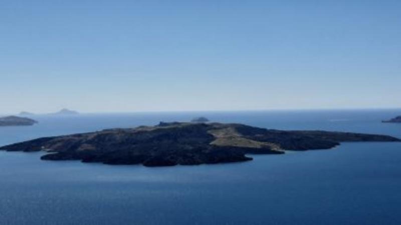 Nea Kameni n'a que 500 ans. C’est une des plus récentes îles de Méditerranée. Elle est apparue en 1573 : le cratère du volcan s'est recréé en surface. Elle fait aujourd’hui 150m d’altitude. Les dernières éruptions ont eu lieu en 1950 et elles ont donné naissance à plusieurs îles qui ont formé l'actuelle Nea Kameni (ie : nouvelle Kameni). C'est un lieu important d'études géologiques,  laboratoire vivant qui montre une activité qui nous a rappelé l'Islande. Le sol est par endroits chaud et on y trouve des fumeroles. Une autre île volcanique se situe tout près de là, au nom de Palea Kameini (ancienne Kameini). Entre les deux Kameini de nombreux courants chauds sont produits par des sources volcaniques sous-marines.