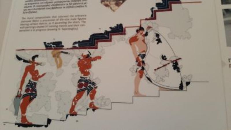 Les fouilles ont mis en évidence de très belles fresques conservées dans les cendres volcaniques qui ont enseveli Théra lors de l’éruption datée de plus ou moins 1600 avant J.C. Elles ont aussi permis de poser l'hypothèse qu'un séisme précurseur de l'éruption avait mis en alerte les habitants qui avaient pu fuir. Ce serait pour cette raison