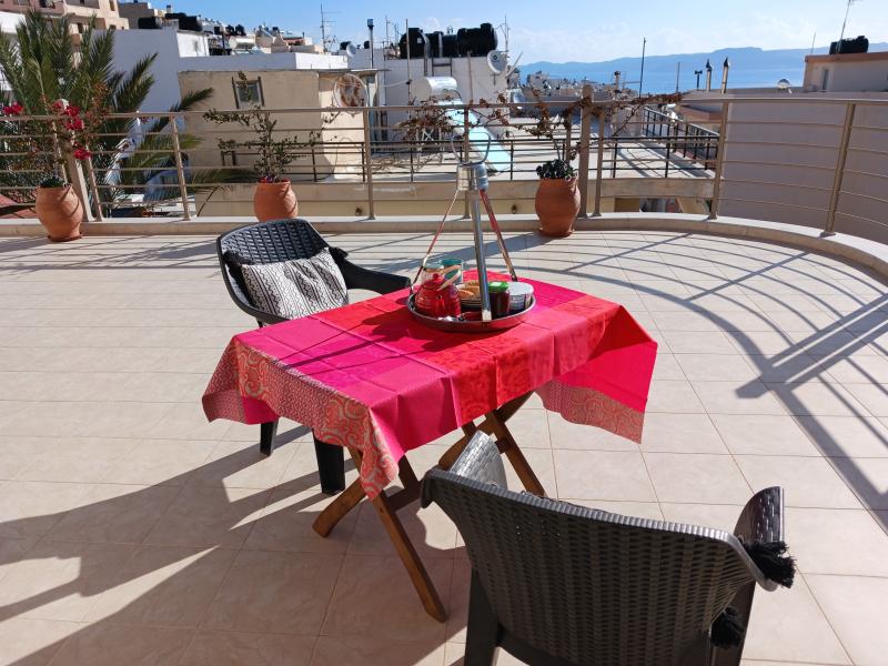 Après une visite à notre oncle Gaston à Mandelieu, nous avons gagné Athènes. En tout depuis Nantes, 4 avions, Nantes-Nice, Nice-Rome, Rome-Athènes, et enfin Athènes-Sitia. C’était un peu fatigant, surtout les attentes en aéroport et particulièrement, lors d'une correspondance à Rome de 4 heures. C'est toujours un bonheur d'atterrir sur le petit aéroport de Sitia où l'on descend de l'avion directement sur le tarmac pour rejoindre à pied les bâtiments.