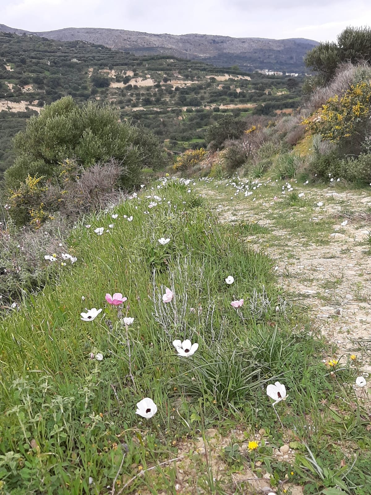 Partout dans la montagne les fleurs disparaissent. Les magnifiques glaïeuls d'Italie ont fini leur saison. Les fruits sont de plus en plus nombreux, les raisins petits et verts grossissent de jour en jour, les amandes sont pour certaines énormes, on voit de petites cerises et je couve des yeux certains figuiers que j'ai repérés. Sous peu leurs figues seront mûres. Les mousmoulos, nèfles du Japon le sont déjà. Cette nèfle est un fruit délicieux malgré sont nom qui pour nous évoque ces fruits qu'on mange blets et qui ne sont guère appétissants. Là bien au contraire, grosses comme des reine-claude, jaunes comme des mirabelles, elles ont un goût que je dirais proche de ces dernières avec un peu de raisin. C'est juteux, sucré, délicieux. Depuis dix jours on trouve sur le marché de Sitia des fraises délicieuses. Bref si ce n'est pas le paradis ça y ressemble. J'ai mis en photo principale un figuier de barbarie qui a commencé lui aussi sa fructification.