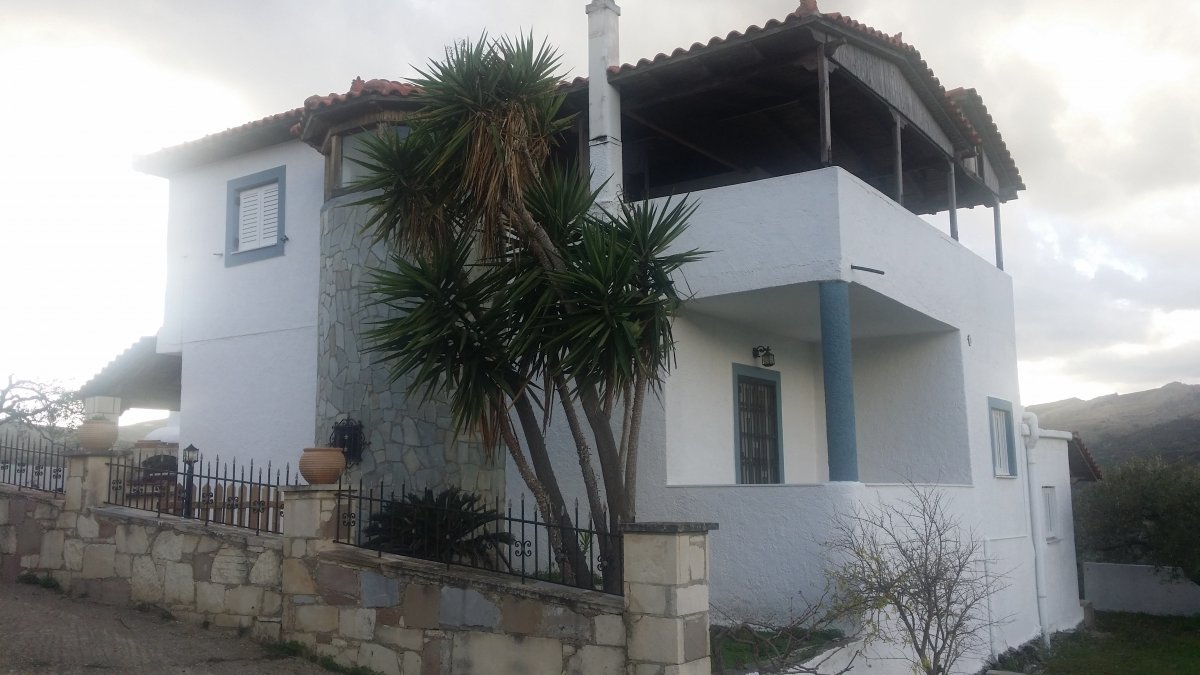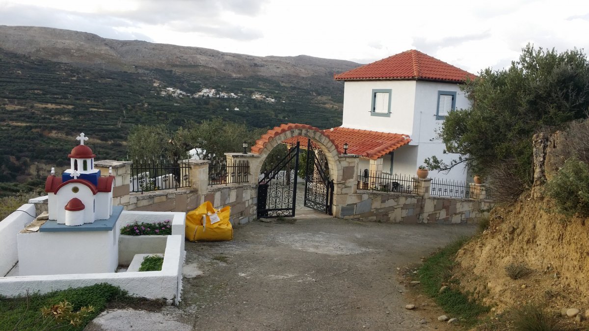 Au retour de la promenade, j'ai pris des photos de ma future maison (dont je disposerai quand je rentrerai de France fin janvier). Il y a deux palmiers "ananas" à l'entrée du chemin. Ça fait classe, non ? Vue imprenable sur la baie de Sitia et toute la vallée. Chambres au sud. Une grande loggia au Nord... Waouh !