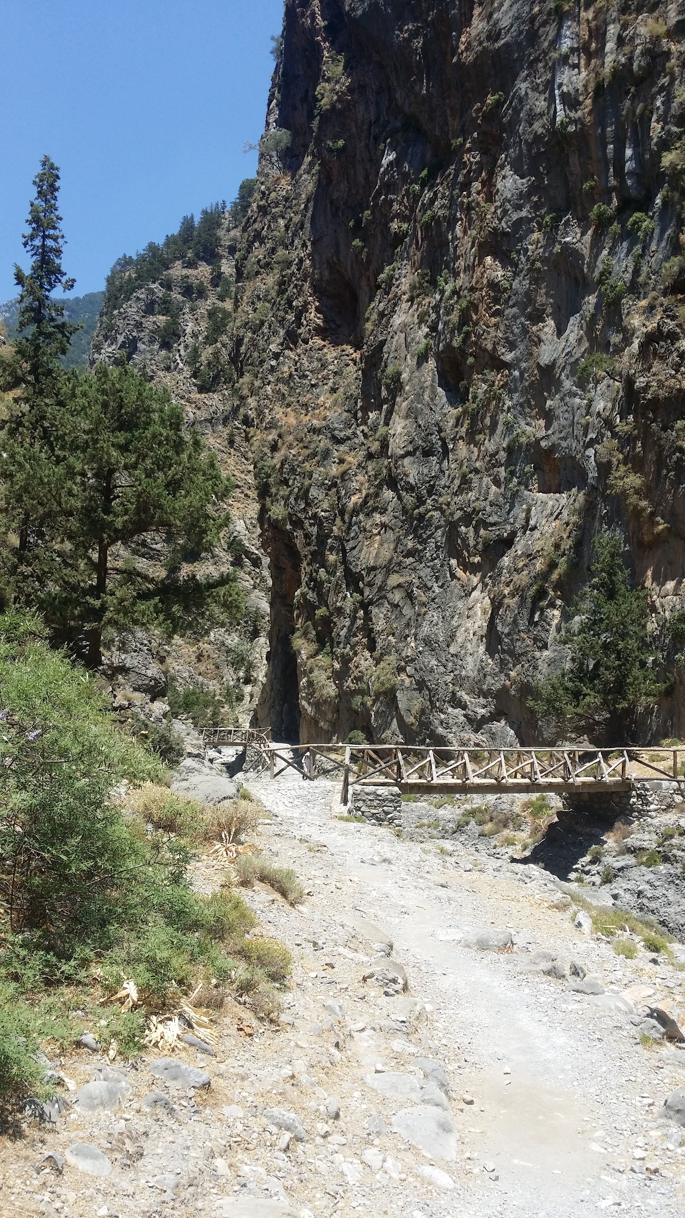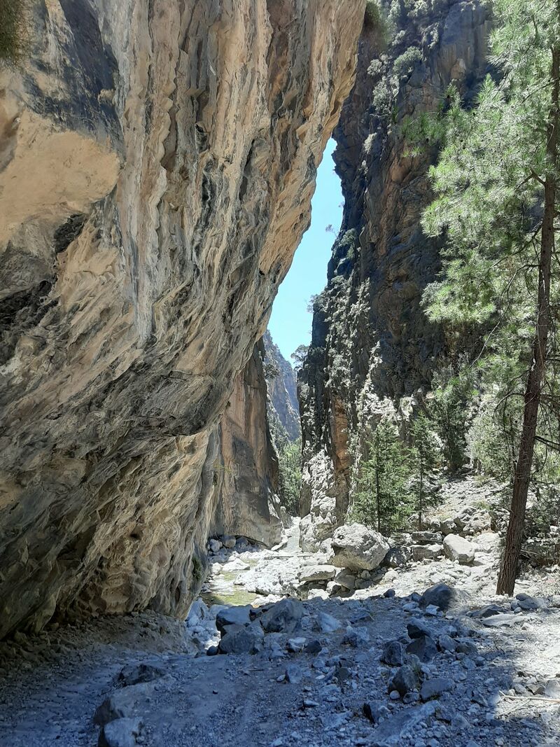 Je suis allé randonner dans la gorge de Samaria qui demeurait fermée jusqu'au 27 juin pour cause de covid. Elle se situe au sud-ouest de la Crète à 40km au sud de Hania (La Canée). C’est, la plus profonde d'Europe paraît-il. 17 km de marche pour 1200 m de dénivelé en descente. Aucune difficulté technique mais fatiguant. On part de 1200 mètre dans la montagne, environ 500 mètres se font par un escalier de pierre et de bois qui fait souffrir les genoux. Avantage : une partie de l’escalier se situe dans une forêt de pins. Inconvénient : plus on descend moins on est protégé par les arbres et c'est alors torride sous le soleil. C'est une des plus belles randonnées que j'ai faites dans ma vie et la plus belle en Crète.