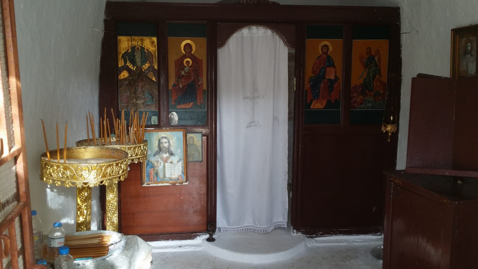 J'ai pu ainsi visiter l'une de ces nombreuses chapelles disséminées un peu partout en montagne. En général elles sont fermées. Là, chance, la clef était sur la serrure. J'ai pu entrer dans cette toute petite église, dont l'iconostase n’était fermée que par un rideau.